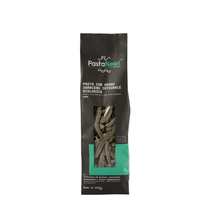 Pasta Negri Pizzoccheri are made from a carefully balanced blend of Italian semolina and wholemeal organic buckwheat flour, stone-milled in Teglio, Valtellina – the birthplace of this traditional dish.
