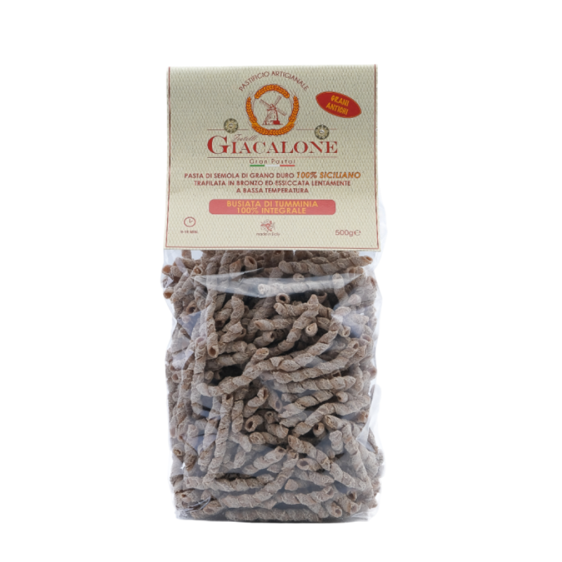 La Busiata di Tumminia 100% è una pasta artigianale ottenuta esclusivamente da semola di grano duro Tumminia siciliano e acqua.